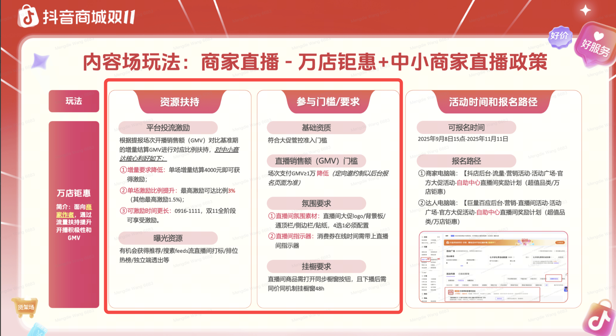 而在今年双11,平台对于中小商家的重视程度,只会「变本加厉」,从流出的招商文件来看,参与门槛比去年还要低上不少,更有利于腰部以下的商家以及新店加入。